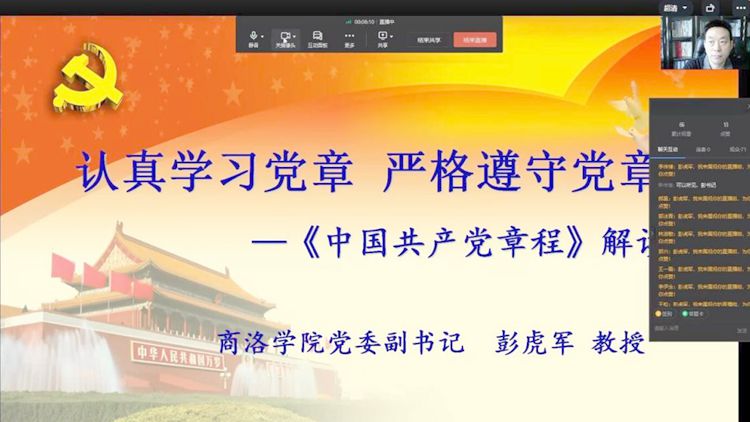 彭虎軍以《認(rèn)真學(xué)習(xí)黨章 嚴(yán)格遵守黨章》為題,從黨章概述、黨章的歷史沿革、黨的二十大通過的《中國共產(chǎn)黨章程(修正案)》解讀、怎樣學(xué)習(xí)貫徹落實黨章四個方面,詳細(xì)闡述了黨章的基本概念、特點、地位和作用,系統(tǒng)解讀了黨章的歷史沿革和歷次修改完善的重點內(nèi)容。他從11個方面講解闡釋了黨的二十大對黨章的修改情況及其豐富的內(nèi)涵,并指出學(xué)習(xí)貫徹黨章的基本方法和應(yīng)該掌握的重點問題,強(qiáng)調(diào)了遵守黨章、尊崇黨章、維護(hù)黨章的重要意義和具體要求。