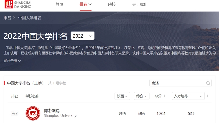 作為具有重要社會(huì)影響力和權(quán)威參考價(jià)值的高等教育專業(yè)評(píng)價(jià)機(jī)構(gòu),2022年4月19日,軟科正式發(fā)布“2022軟科中國(guó)大學(xué)排名”,我校位列全國(guó)第477名,陜西省第23名。2018年,軟科“世界大學(xué)學(xué)術(shù)排名(ARWU)”首次發(fā)布2018“中國(guó)最好大學(xué)排名”內(nèi)地600強(qiáng)名單,我校位居全省第26名,全國(guó)第572名。5年來,我校辦學(xué)實(shí)力與核心競(jìng)爭(zhēng)力逐年穩(wěn)步提升,全國(guó)排名上升95個(gè)位次,省內(nèi)排名上升3個(gè)位次,辦學(xué)影響力和社會(huì)聲譽(yù)顯著增強(qiáng)。
