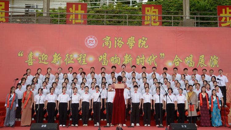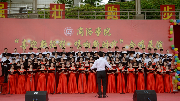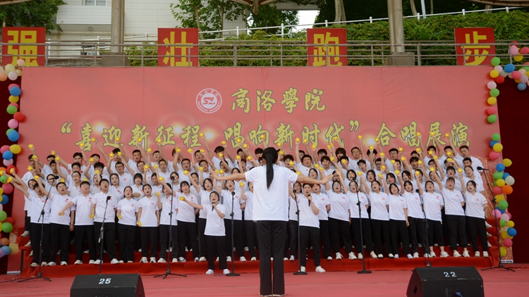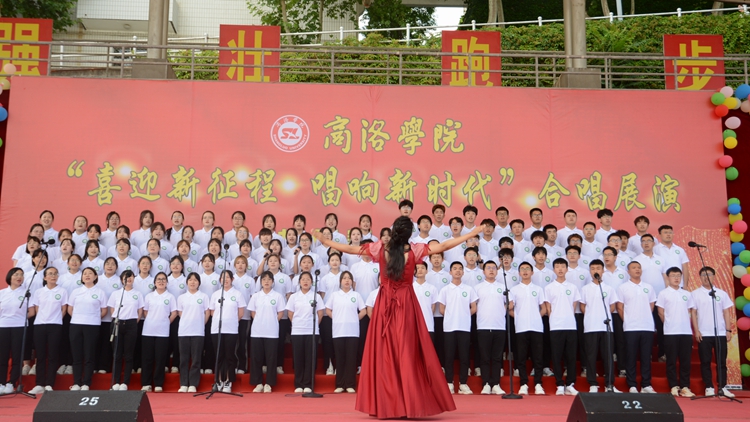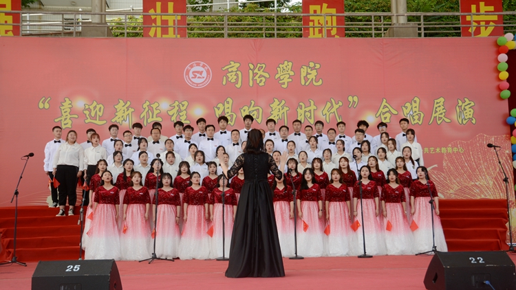 展演中,10個(gè)二級學(xué)院合唱團(tuán)和教職工代表隊(duì)合唱團(tuán)依次登臺亮相,傾情演繹紅色經(jīng)典曲目,用激揚(yáng)的歌聲抒發(fā)愛國情懷和強(qiáng)國之志,充分展現(xiàn)我校師生昂揚(yáng)向上的精神風(fēng)貌?!陡璩鎳贰蹲呦驈?fù)興》《我們走在大路上》《游擊隊(duì)之歌》《強(qiáng)軍戰(zhàn)歌》《秦嶺最美是商洛》等歌曲逐一精彩呈現(xiàn)。一曲曲高歌催人奮進(jìn),一陣陣掌聲心潮澎湃。