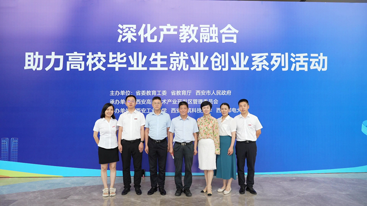 7月13日,由陜西省委教育工委、省教育廳、西安市人民政府主辦,西安高新區(qū)管委會(huì)承辦,西安工業(yè)大學(xué)、西安建筑科技大學(xué)、西安郵電大學(xué)協(xié)辦的“陜西省深化產(chǎn)教融合助力高校畢業(yè)生就業(yè)創(chuàng)業(yè)系列活動(dòng)”在西安高新區(qū)開(kāi)幕。我校“雙聘院士”、中國(guó)工程院院士張生勇出席開(kāi)幕式,并親臨我校科技成果展臺(tái)參觀(guān)指導(dǎo)。校長(zhǎng)范新會(huì)參加開(kāi)幕式。