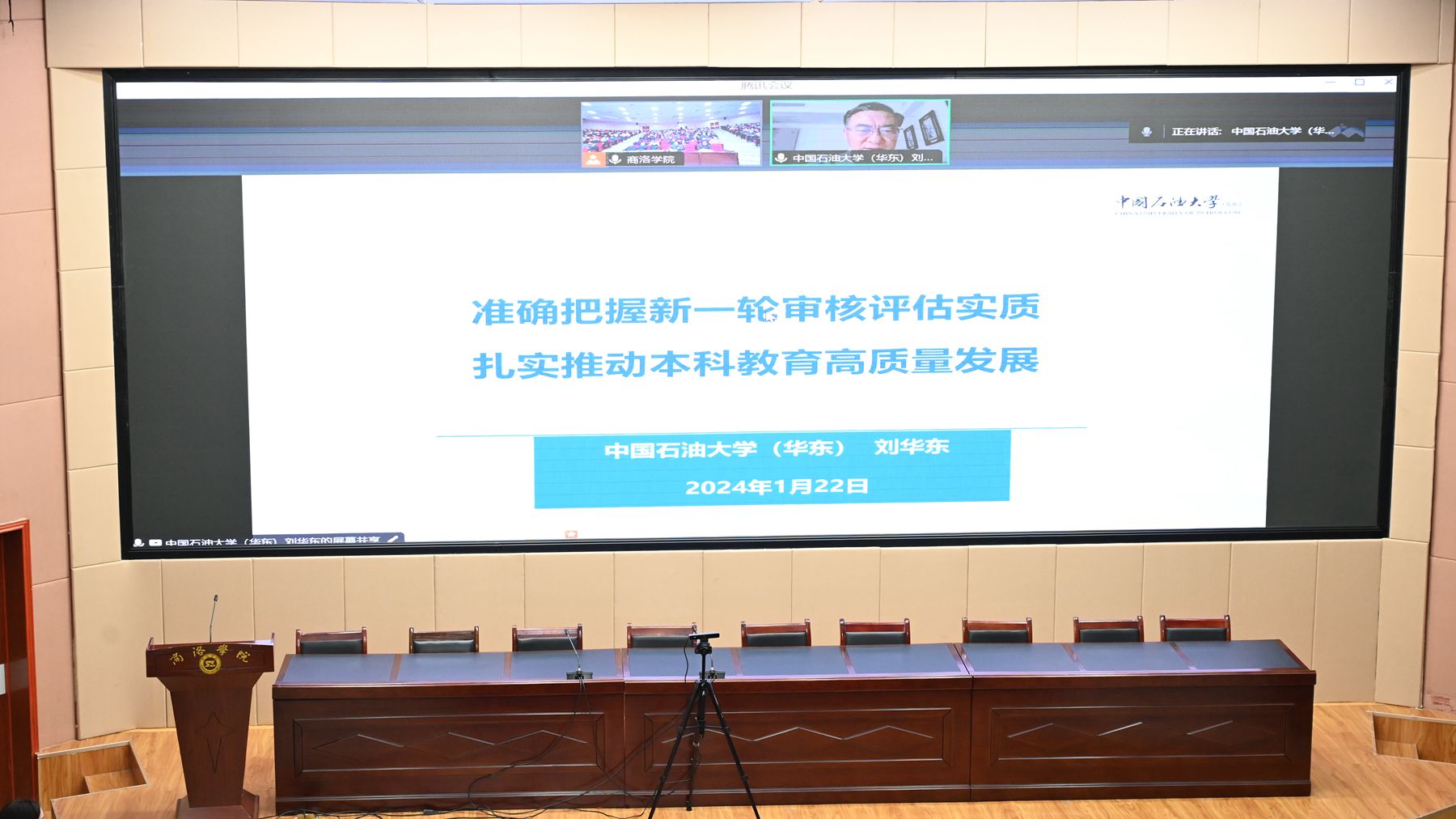 1月22日上午,我校召開審核評估工作迎評動員會,全面部署本科教育教學(xué)審核評估相關(guān)工作。中國石油大學(xué)(華東)校務(wù)委員會副主任,原黨委副書記、副校長劉華東教授應(yīng)邀作專題輔導(dǎo)報(bào)告。校黨委書記張志昌作動員講話。校長范新會主持大會。黨委副書記劉勇,副校長劉寶盈、王新軍、郭瑾出席會議。