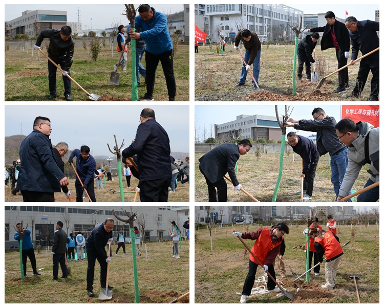 3月12日,正值第46個(gè)植樹節(jié),我校在丹江校區(qū)組織開展義務(wù)植樹活動。校長范新會,黨委副書記劉勇,黨委副書記、紀(jì)委書記王浩,副校長劉寶盈、郭瑾,相關(guān)部門負(fù)責(zé)人與50余名青年志愿者共同為校園增添新綠。