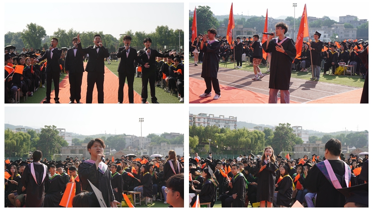 藝術(shù)學(xué)院師生為畢業(yè)生表演了《追夢赤子心》等富有青春熱情、飽含留戀不舍的暖場歌曲。