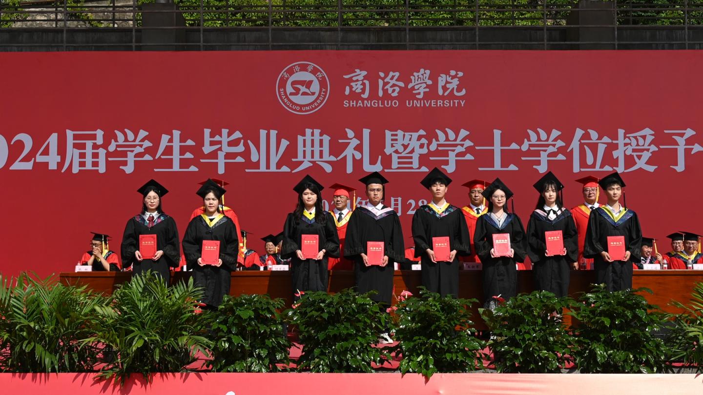 王新軍宣讀了商洛學(xué)院2024屆畢業(yè)生資格審查結(jié)果通報、學(xué)士學(xué)位授予決議、商洛學(xué)院優(yōu)秀畢業(yè)生表彰決定、商洛學(xué)院“奉獻(xiàn)基層 服務(wù)邊疆”優(yōu)秀畢業(yè)生表彰決定、商洛學(xué)院校友總會聘任2024屆校友聯(lián)絡(luò)員通知。在熱烈的掌聲中,校領(lǐng)導(dǎo)為優(yōu)秀畢業(yè)生頒發(fā)證書,為校友聯(lián)絡(luò)員頒發(fā)了聘書。
