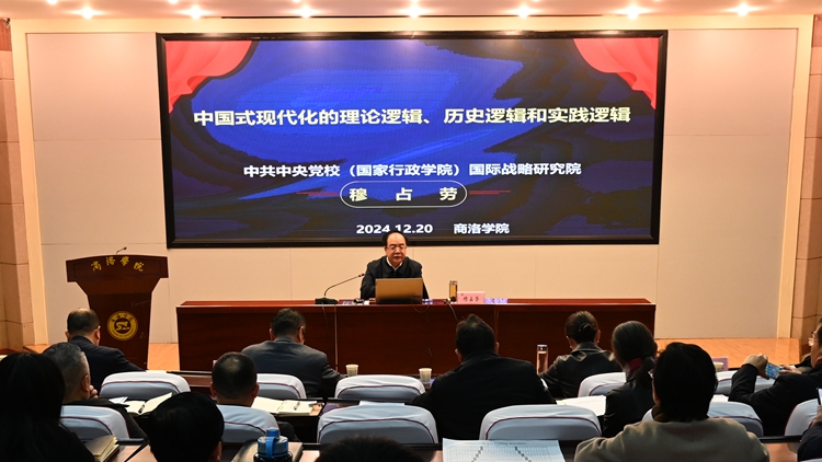 12月20日,商洛學(xué)院召開(kāi)黨委理論學(xué)習(xí)中心組集體學(xué)習(xí)(擴(kuò)大)會(huì)議,專題學(xué)習(xí)習(xí)近平總書(shū)記對(duì)新時(shí)代馬克思主義理論研究和建設(shè)工程作出的重要指示精神,邀請(qǐng)中共中央黨校(國(guó)家行政學(xué)院)國(guó)際戰(zhàn)略研究院教學(xué)秘書(shū)、研究生導(dǎo)師穆占勞教授作輔導(dǎo)報(bào)告。會(huì)議由校黨委副書(shū)記、校長(zhǎng)權(quán)雅寧主持。校黨委理論學(xué)習(xí)中心組成員,各二級(jí)學(xué)院黨委、黨總支、直屬黨支部負(fù)責(zé)人,各二級(jí)學(xué)院院長(zhǎng)、職能部門(mén)負(fù)責(zé)人及思政課教師代表參加學(xué)習(xí)。