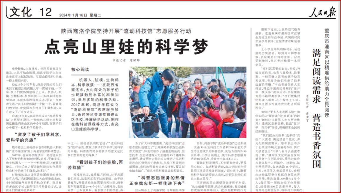 《人民日?qǐng)?bào)》專(zhuān)題報(bào)道商洛學(xué)院“流動(dòng)科技館”志愿服務(wù)工作