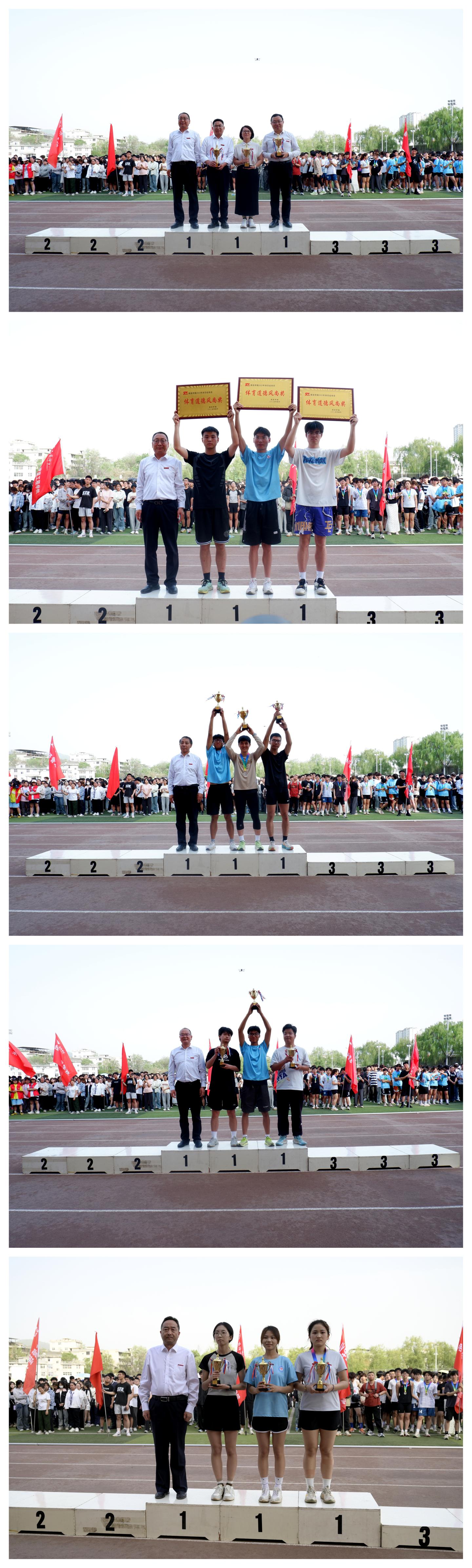 本次運(yùn)動(dòng)會(huì)共有2000余名運(yùn)動(dòng)員參加了27個(gè)比賽項(xiàng)目的角逐,打破2項(xiàng)校運(yùn)會(huì)紀(jì)錄。電子信息與電氣工程學(xué)院摘得團(tuán)體總分桂冠,數(shù)學(xué)與計(jì)算機(jī)應(yīng)用學(xué)院、生物醫(yī)藥與食品工程學(xué)院分別位列第二、三名。男子團(tuán)體總分前三名分別是數(shù)學(xué)與計(jì)算機(jī)應(yīng)用學(xué)院、電子信息與電氣工程學(xué)院、城鄉(xiāng)規(guī)劃與建筑工程學(xué)院。女子團(tuán)體總分前三名分別是數(shù)學(xué)與計(jì)算機(jī)應(yīng)用學(xué)院、生物醫(yī)藥與食品工程學(xué)院、電子信息與電氣工程學(xué)院。數(shù)學(xué)與計(jì)算機(jī)應(yīng)用學(xué)院、經(jīng)濟(jì)管理學(xué)院、藝術(shù)學(xué)院獲得商洛學(xué)院2025年田徑運(yùn)動(dòng)會(huì)體育道德風(fēng)尚獎(jiǎng)。