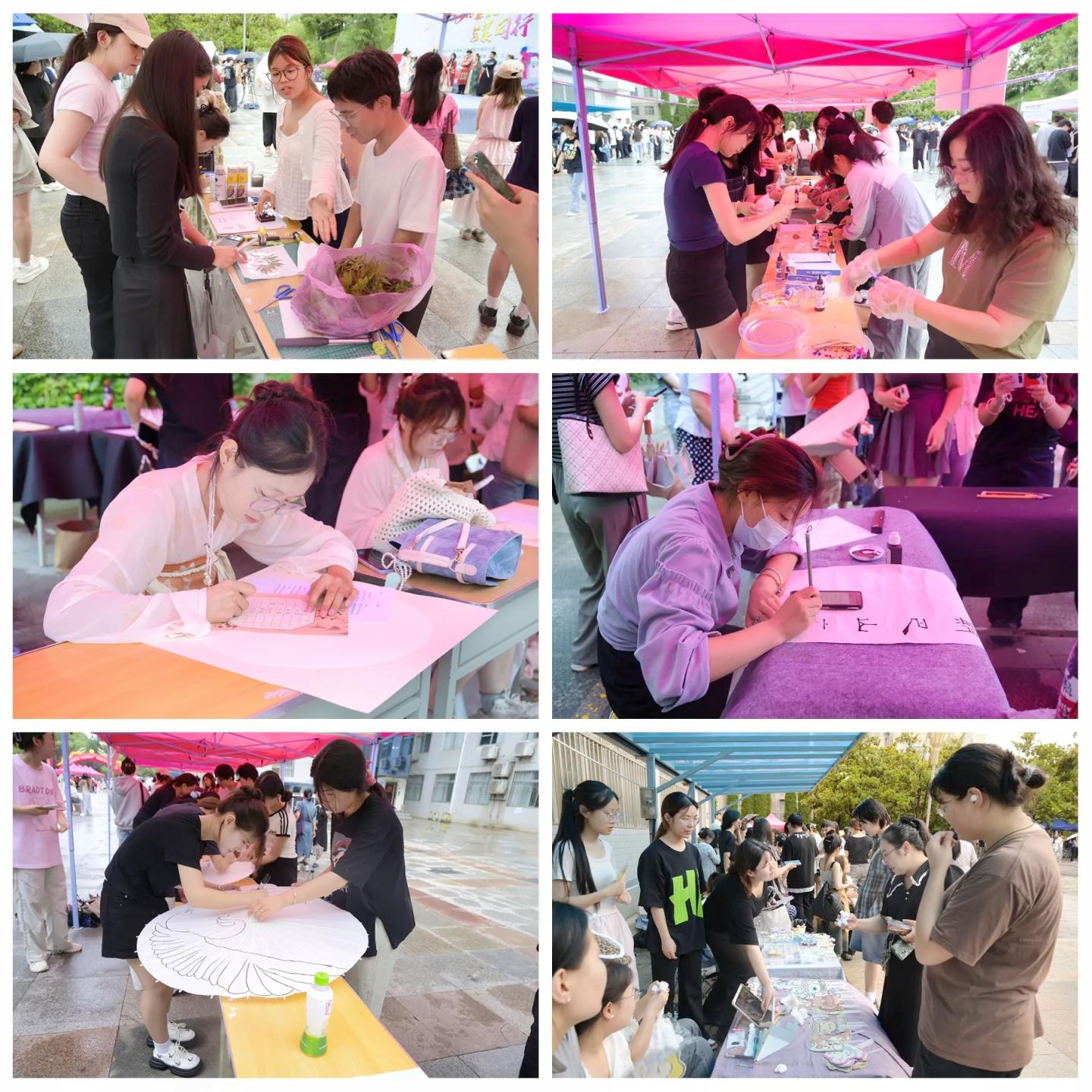 在游園活動中,師生沉浸式參與“霓裳·重光”古裝造型賽、“詩海競帆”詩詞擂臺賽、“筆競風(fēng)華”書法擂臺賽、“指尖生花”創(chuàng)意彩繪、“藝展芳華”美育趣味體驗(yàn)、“藝心雅趣”文創(chuàng)市集、“鏡觀萬象”校園影像大賽、油畫寫生展、中國畫寫生展等體驗(yàn)項(xiàng)目,各種活動奇妙交融,游園現(xiàn)場人潮如織、氣氛熱烈。