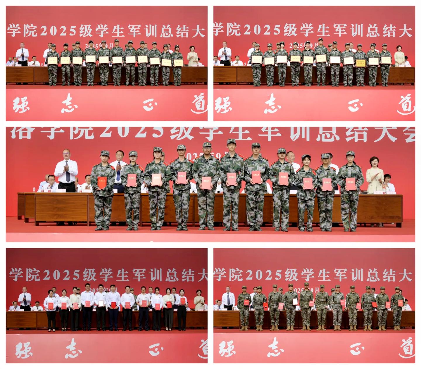與會(huì)領(lǐng)導(dǎo)分別為軍事技能訓(xùn)練先進(jìn)集體、軍訓(xùn)內(nèi)務(wù)整理先進(jìn)集體、軍訓(xùn)工作優(yōu)秀教官、軍訓(xùn)工作先進(jìn)個(gè)人、軍訓(xùn)優(yōu)勝標(biāo)兵代表頒發(fā)了獎(jiǎng)牌和榮譽(yù)證書。