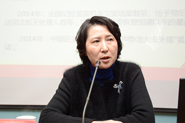 姜杰闡述了十八大以來的反腐形勢(shì),回顧了2014年全國(guó)反腐情況,分析了2015年反腐任務(wù)清單,講解了職務(wù)犯罪的概念、分類及特點(diǎn),并結(jié)合法律法規(guī)及真實(shí)案例,對(duì)貪污罪、受賄罪、挪用公款、小金庫(kù)等典型職務(wù)犯罪行為,進(jìn)行了深入剖析。在報(bào)告中,她對(duì)防范職務(wù)犯罪提出了具體建議,希望黨員干部嚴(yán)以用權(quán),恪守職業(yè)準(zhǔn)則,正確看待圍繞在權(quán)力周圍的人和事,享受自由的可貴,愛惜自己和家人,遠(yuǎn)離職務(wù)犯罪。