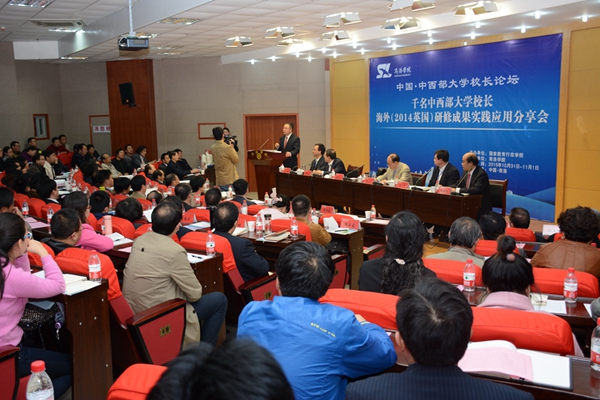 10月31-11月1日,“中國?中西部大學(xué)校長論壇——千名中西部大學(xué)校長海外(2014英國)研修成果實踐應(yīng)用分享會”在我校隆重召開。來自全國17個省市22所中西部大學(xué)的40余位書記、校長、專家齊聚我校,共同探討交流應(yīng)用型本科院校建設(shè)等有關(guān)問題。教育部港澳臺辦常務(wù)副主任趙靈山、國家教育行政學(xué)院涉外培訓(xùn)部主任樊平軍、陜西省委高教工委常務(wù)副書記董小龍,商洛市委常委、副市長武文罡出席會議。