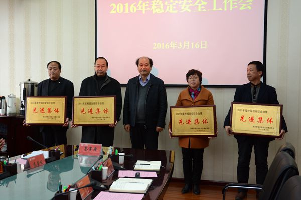 黨委書記、校長(zhǎng)劉建林在講話中結(jié)合全省高校穩(wěn)定安全工作會(huì)議精神,對(duì)我校2016年穩(wěn)定安全工作提出了4點(diǎn)具體要求:一是認(rèn)清形勢(shì),正視問(wèn)題,切實(shí)增強(qiáng)做好學(xué)校安全工作的責(zé)任感和使命感。要進(jìn)一步強(qiáng)化政治意識(shí)、大局意識(shí)、憂患意識(shí)和責(zé)任意識(shí),充分認(rèn)識(shí)加強(qiáng)學(xué)校穩(wěn)定安全工作的重要性和緊迫性,切實(shí)提高做好學(xué)校穩(wěn)定安全工作的使命感和責(zé)任感,倍加珍惜學(xué)校事業(yè)發(fā)展的機(jī)遇,倍加珍惜浸透了師生的心血、來(lái)之不易的學(xué)校發(fā)展的大好局面,全力維護(hù)學(xué)校穩(wěn)定安全,為學(xué)校持續(xù)發(fā)展創(chuàng)造良好的環(huán)境。二是要提高認(rèn)識(shí),健全制度,形成安全穩(wěn)定工作的強(qiáng)大合力。要牢固樹(shù)立“穩(wěn)定壓倒一切、警鐘長(zhǎng)鳴、全員抓安全穩(wěn)定”三種意識(shí),繼續(xù)實(shí)施穩(wěn)定安全工作責(zé)任制和責(zé)任追究制,齊抓共管,形成合力。三是要穩(wěn)定隊(duì)伍,提高素質(zhì),不斷適應(yīng)新形勢(shì)下安全穩(wěn)定工作的管理要求。要建設(shè)一支適應(yīng)新時(shí)期、新形勢(shì)要求的穩(wěn)定安全工作專兼職隊(duì)伍,促進(jìn)穩(wěn)定安全管理水平的提升。四是要明確任務(wù),從嚴(yán)從實(shí),努力做好穩(wěn)定安全重點(diǎn)工作。要強(qiáng)化隱患排查,消除各類安全隱患;進(jìn)一步完善安全穩(wěn)定工作運(yùn)行機(jī)制;強(qiáng)化安全教育,提升安全防范能力,進(jìn)一步強(qiáng)化人防物防技防建設(shè);加強(qiáng)意識(shí)形態(tài)管理,凈化校園網(wǎng)絡(luò)環(huán)境;加快推進(jìn)“平安校園”建設(shè)。
