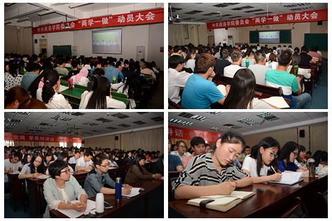 劉建林在講話中從“凝聚共識,深刻領會‘兩學一做’學習教育的重大意義;聚焦主要內容,扎實推進‘兩學一做’學習教育;嚴抓落實,確?!畠蓪W一做’學習教育取得實效”三個方面全面闡釋了“兩學一做”學習教育的重大意義、目標任務和主要內容,對我校黨員師生開展“兩學一做”提出了具體要求。他指出,在全體黨員中開展“學黨章黨規(guī)、學系列講話,做合格黨員”學習教育,是繼黨的群眾路線教育實踐活動、“三嚴三實”專題教育之后,深化黨內教育的又一次重要實踐,也是面向全體黨員從集中性教育活動向經常性教育延伸的重要舉措。在學校構建“穩(wěn)基、提質、增速,創(chuàng)新驅動發(fā)展”的新常態(tài),全面實施本科教育的關鍵時期開展“兩學一做”學習教育至關重要,目的就是加強黨的建設,要求全體黨員以學促做、知行合一,成為講政治、有信念,講規(guī)矩、有紀律,講道德、有品行,講奉獻、有作為的合格黨員,在實現(xiàn)個人價值的同時為學校發(fā)展做出貢獻。