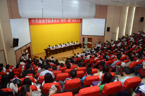 黨委副書記、副校長范新會主持大會。黨委副書記彭虎軍宣讀了《中共商洛學院委員會關于印發(fā)<在全校黨員中開展“學黨章黨規(guī)、學系列講話、做合格黨員”學習教育實施方案>的通知》。