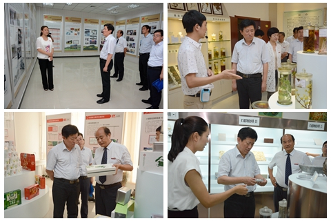 在劉建林、范新會等的陪同下,郝翔一行參觀了我校發(fā)展成就展展廳、秦嶺植物標本陳列室、生物學優(yōu)勢學科展室和陜西省尾礦資源綜合利用重點實驗室等處。