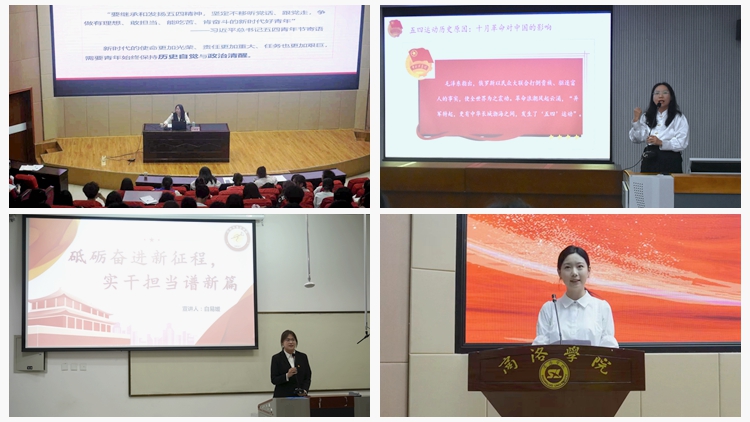 在團(tuán)員青年主題宣講環(huán)節(jié),校團(tuán)委紅色號(hào)角宣講團(tuán)成員白易媛、張雨欣、楊婷、特暢以《砥礪奮進(jìn)新征程實(shí)干擔(dān)當(dāng)譜新篇》《學(xué)思踐悟新思想篤行實(shí)干向未來(lái)》《生而逢盛世青年當(dāng)有為》《讓學(xué)雷鋒在新時(shí)代大學(xué)生中蔚然成風(fēng)》為題,著眼于優(yōu)秀校友、身邊典型,號(hào)召?gòu)V大青年堅(jiān)定理想信念,聽(tīng)黨話、跟黨走,爭(zhēng)做有理想、能吃苦、敢擔(dān)當(dāng)、肯奮斗的新時(shí)代好青年。