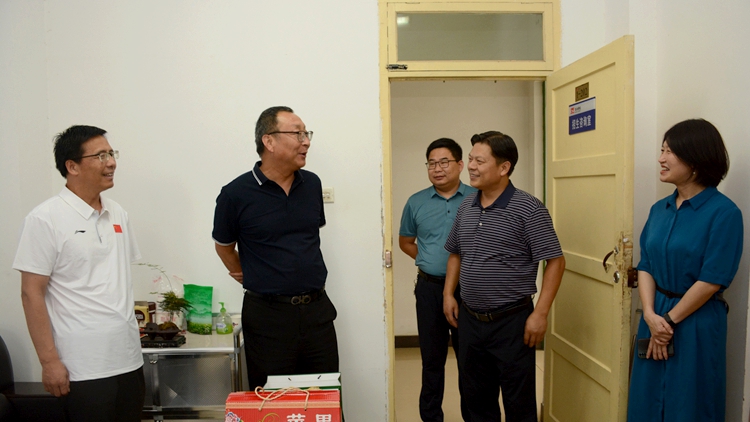 8月8日,郭瑾走訪了學(xué)生宿舍、教職工食堂、大學(xué)生活動(dòng)中心施工現(xiàn)場(chǎng)、8號(hào)樓和各保安值班崗等場(chǎng)所,實(shí)地檢查假期校園安全、施工進(jìn)度、服務(wù)保障等工作開展情況,詳細(xì)排查各項(xiàng)安全隱患。郭瑾強(qiáng)調(diào),校園安全是學(xué)校事業(yè)發(fā)展的前提,感謝假期在崗教職員工的勤懇敬業(yè)、無私奉獻(xiàn),希望大家時(shí)刻繃緊安全生產(chǎn)之弦,不斷提高服務(wù)保障能力和管理水平,為秋季新學(xué)期的到來提前謀劃、做足準(zhǔn)備,以實(shí)際行動(dòng)確保校園穩(wěn)定安全。