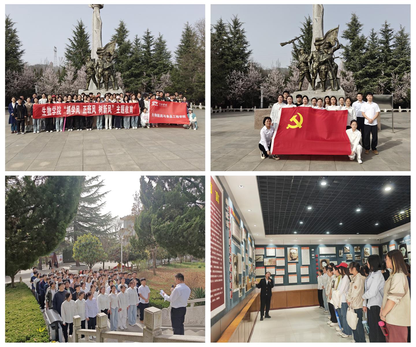 生物醫(yī)藥與食品工程學(xué)院80余名師生共赴商洛市金鳳山,開展了“緬懷革命先烈 踐行青春使命”主題教育活動(dòng)。全體師生在金鳳山人民英雄紀(jì)念碑前莊嚴(yán)肅立,開展學(xué)生支部主題黨日活動(dòng),黨員代表李晴向紀(jì)念碑敬獻(xiàn)鮮花,全體成員默哀一分鐘,深切緬懷革命先烈。學(xué)生第二黨支部書記韋偉以“傳承紅色基因,爭(zhēng)做時(shí)代新人”為題作主題發(fā)言。師生集體參觀革命紀(jì)念館,感悟革命年代的信仰力量。