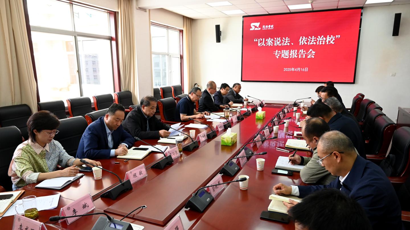 4月16日,學(xué)校召開“以案說法、依法治?!狈ㄖ螌n}報告會。學(xué)校特聘法律顧問、天乾律師事務(wù)所陳波律師為各部門負(fù)責(zé)人作依法治校專題報告。報告會由校黨委副書記劉寶盈主持。副校長王新軍、郭瑾、張向東出席報告會。