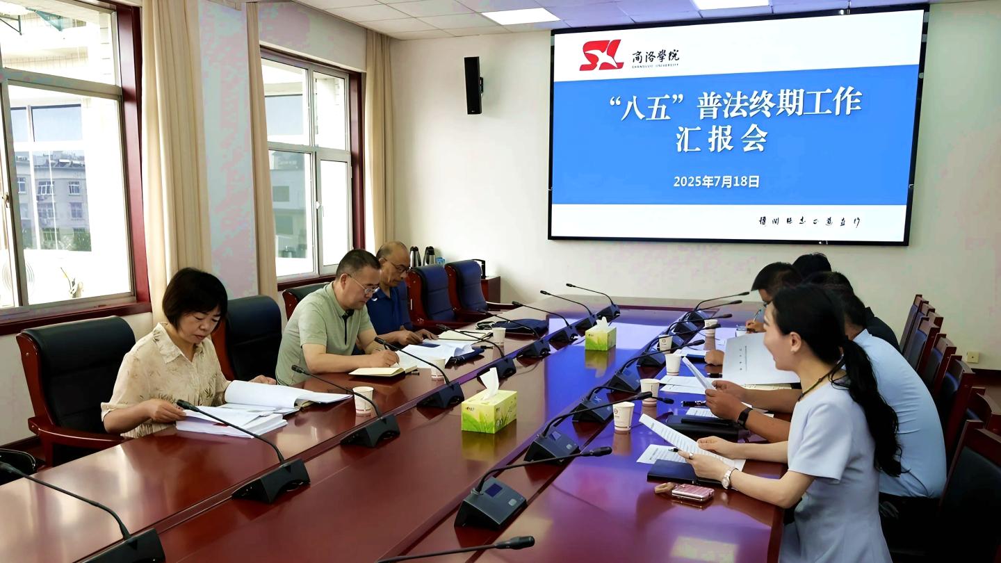 7月18日,商洛市“八五”普法總結(jié)驗(yàn)收實(shí)地調(diào)研組成員,市委組織部四級(jí)調(diào)研員李海平、市中級(jí)人民法院四級(jí)調(diào)研員孫天峰、市委依法治市辦秘書科科長(zhǎng)伍丹英一行3人來(lái)校開展“八五”普法終期檢查指導(dǎo)。黨委辦公室·院長(zhǎng)辦公室、宣傳部、學(xué)生處、保衛(wèi)處等部門相關(guān)負(fù)責(zé)人參加匯報(bào)座談會(huì)。