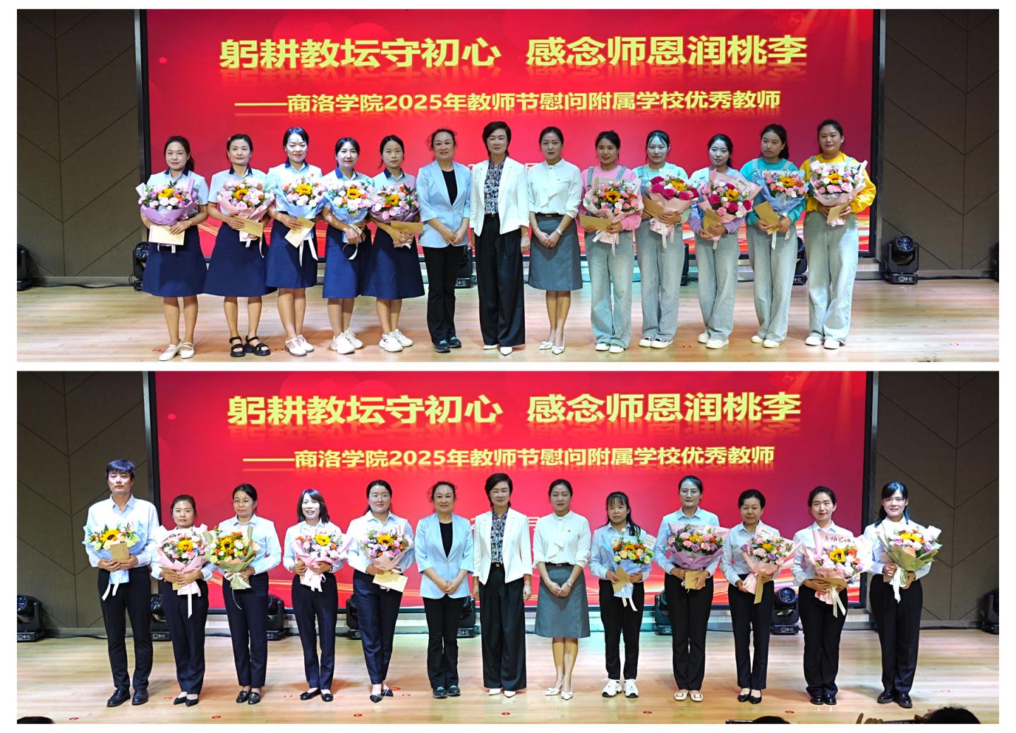慰問活動(dòng)中,附屬小學(xué)校長(zhǎng)趙阿玲、附屬幼兒園園長(zhǎng)劉莉莉分別介紹了各自辦學(xué)理念、辦學(xué)特色及合作項(xiàng)目開展情況,并對(duì)商洛學(xué)院長(zhǎng)期以來的支持表示感謝。附屬學(xué)校優(yōu)秀教師代表在發(fā)言中紛紛表示,將把商洛學(xué)院的關(guān)懷轉(zhuǎn)化為立德樹人的動(dòng)力,全力以赴投身教育事業(yè),培養(yǎng)更多德智體美勞全面發(fā)展的時(shí)代新人。
