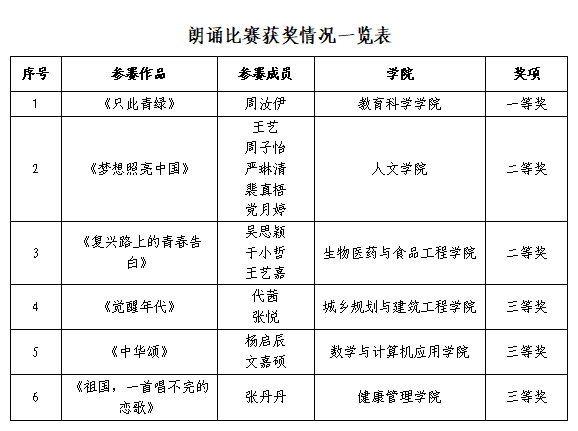活動(dòng)中開(kāi)展了新生朗誦比賽,來(lái)自各學(xué)院的2025級(jí)新生以飽滿(mǎn)的熱情、真摯的情感朗誦了經(jīng)典作品,贏得了現(xiàn)場(chǎng)觀眾的熱烈掌聲。經(jīng)過(guò)激烈角逐,教育科學(xué)學(xué)院選手獲一等獎(jiǎng),人文學(xué)院、生物學(xué)院選手獲二等獎(jiǎng),建工學(xué)院、數(shù)計(jì)學(xué)院、健康學(xué)院選手獲三等獎(jiǎng)。