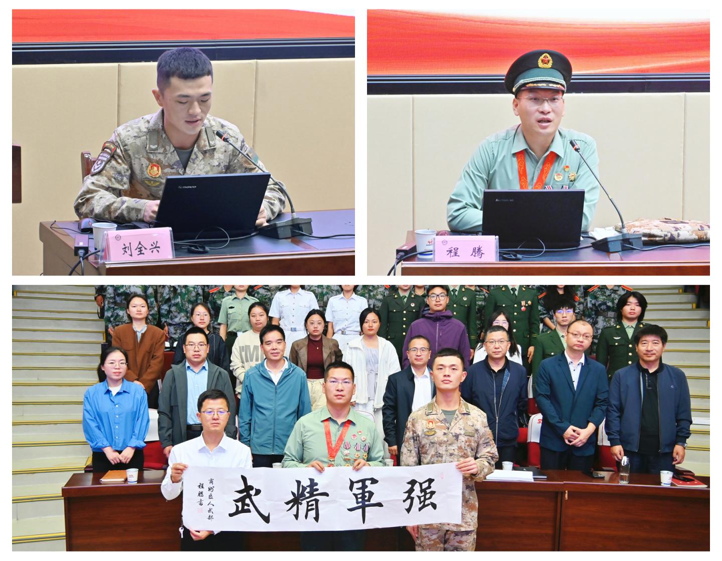 為增強(qiáng)廣大學(xué)生的國防意識(shí),厚植愛國主義情懷,全面營造大學(xué)生參軍報(bào)國的濃厚氛圍,9月20日,我校邀請(qǐng)商洛籍海軍陸戰(zhàn)隊(duì)退役軍人、九三閱兵預(yù)備役部隊(duì)方隊(duì)受閱戰(zhàn)士劉全興,退役軍人、商州區(qū)夜村國有林場組織委員兼資源股股長、九三閱兵觀禮嘉賓程騰為2025級(jí)新生作國防教育專題講座。
