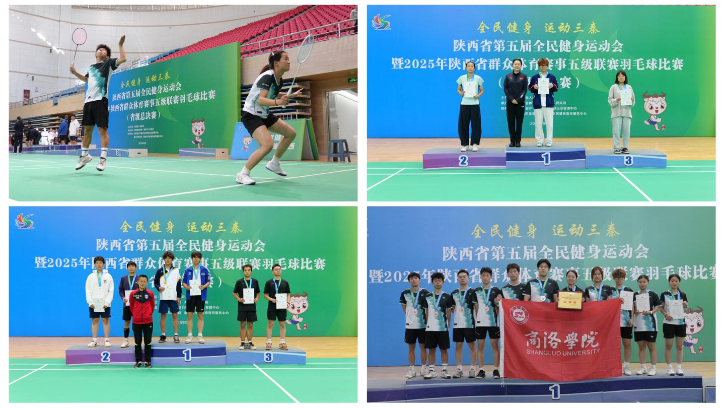 9月27日,由陜西省人民政府主辦,陜西省體育局、商洛市人民政府承辦,陜西省乒羽網(wǎng)運(yùn)動(dòng)管理中心、商洛市體育局、商洛市全民健身服務(wù)指導(dǎo)中心協(xié)辦的陜西省第五屆全民健身運(yùn)動(dòng)會(huì)羽毛球省級(jí)總決賽在商洛市體育館圓滿落幕。歷經(jīng)五天的激烈角逐,我校榮獲大學(xué)生組團(tuán)體第三名,并在單項(xiàng)賽中獲金獎(jiǎng)1項(xiàng)、銀獎(jiǎng)2項(xiàng)、銅獎(jiǎng)3項(xiàng)。