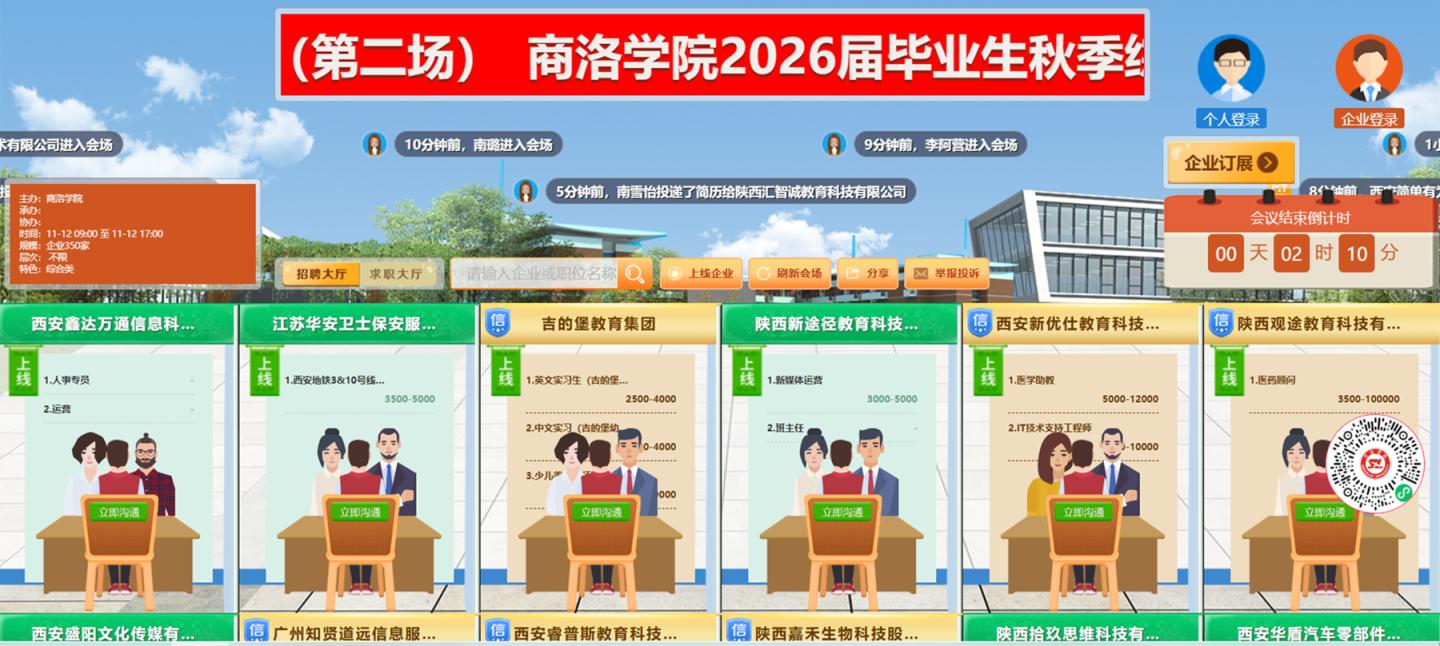 11月12日,我校舉辦2026屆畢業(yè)生秋季綜合類暨“職引未來”全國城市聯(lián)合招聘高校畢業(yè)生校園專場網(wǎng)絡(luò)視頻招聘會(第二場)。招聘會共邀請華羿微電子股份有限公司、陜西美邦藥業(yè)集團(tuán)股份有限公司、西安環(huán)海機(jī)器人科技有限公司等220余家優(yōu)質(zhì)用人單位云端匯聚,為畢業(yè)生精準(zhǔn)提供有效就業(yè)崗位4630余個(gè)。