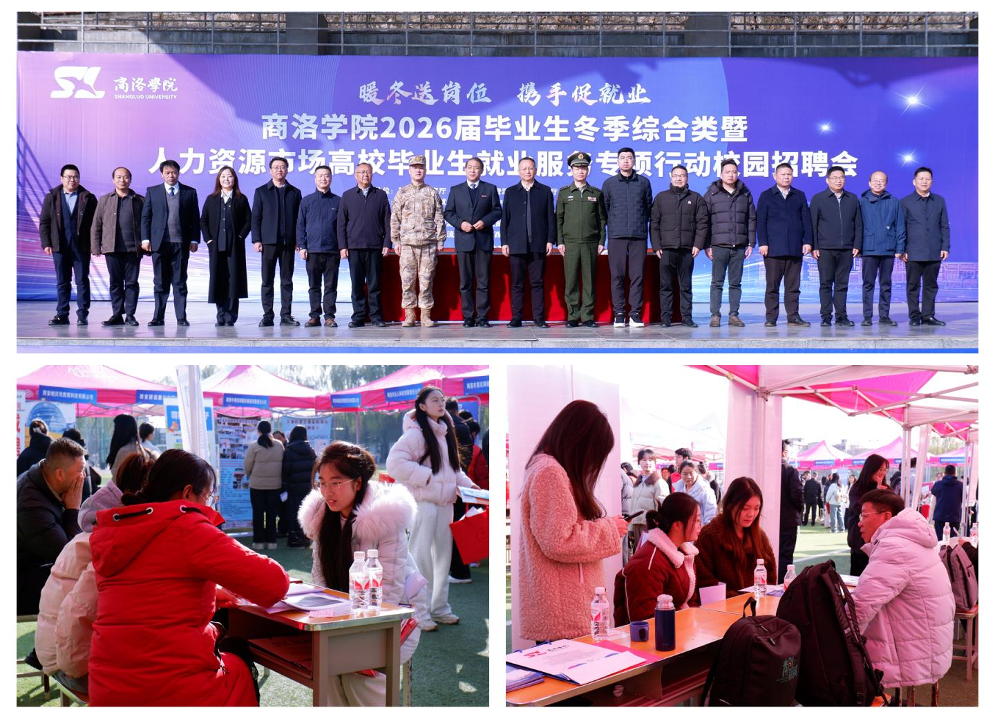 12月5日,我校順利舉辦2026屆畢業(yè)生冬季綜合類暨人力資源市場高校畢業(yè)生就業(yè)服務(wù)專項(xiàng)行動校園招聘會。校黨委副書記王新軍、湖州市人社局副局長朱新江、商洛市人社局副局長沈禮軍、商洛市人才中心主任張占宏等出席活動并現(xiàn)場指導(dǎo)工作。