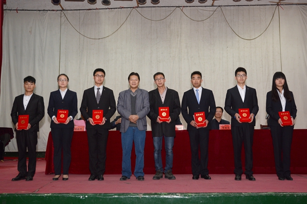 11月4日,我校召開(kāi)2015年度大學(xué)生創(chuàng)新實(shí)踐表彰大會(huì),對(duì)在大學(xué)生課外學(xué)術(shù)競(jìng)賽及創(chuàng)新創(chuàng)業(yè)大賽中獲獎(jiǎng)的項(xiàng)目、個(gè)人及指導(dǎo)教師,以及在大學(xué)生創(chuàng)新實(shí)踐活動(dòng)中表現(xiàn)優(yōu)異的集體和個(gè)人進(jìn)行表彰獎(jiǎng)勵(lì)。學(xué)生處處長(zhǎng)石啟英、科研處處長(zhǎng)李繼高、招生就業(yè)處副處長(zhǎng)楊建峰、教務(wù)處副處長(zhǎng)劉勇、團(tuán)委副書記彭曉邦及受表彰的師生代表參加了會(huì)議。會(huì)議由彭曉邦主持。