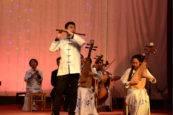 12月16日,由宣傳部、團(tuán)委和學(xué)生處承辦的陜西文化惠民演出《大秦川》民族音樂會在大學(xué)生活動中心隆重舉辦。青年歌唱家、陜西民族樂團(tuán)團(tuán)長沙莎帶領(lǐng)樂團(tuán)成員為我校觀眾們表演了《戰(zhàn)馬奔騰》等名歌名曲。校黨委書記、校長劉建林,紀(jì)委書記王思懷,副校長魏書堂和師生們一同觀看了演出。