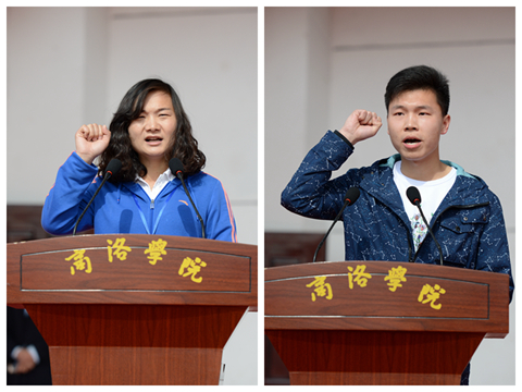 運(yùn)動(dòng)員代表邢逸飛、裁判員代表?xiàng)钇G分別代表全體運(yùn)動(dòng)員、裁判員宣誓。