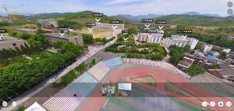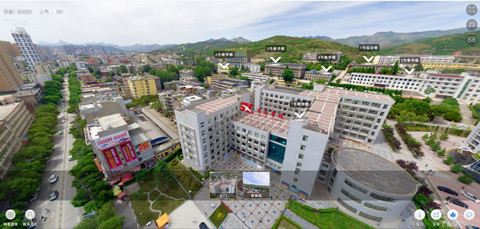 商洛學(xué)院720全景漫游系統(tǒng)分正門和體育場(chǎng)兩個(gè)場(chǎng)景。在正門的場(chǎng)景里,我們可以看到1、2、4、5、6號(hào)教學(xué)樓,1號(hào)宿舍樓,圖書館和體育場(chǎng)。頁面如下: