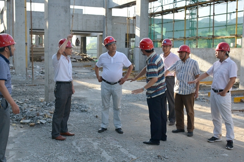 7月28日,校黨委書記、校長劉建林,副校長魏書堂、劉寶盈來到綜合教學(xué)樓、青年教師公寓、學(xué)生公寓工地,查驗(yàn)工程建設(shè)進(jìn)展情況,并召開現(xiàn)場辦公會(huì)聽取相關(guān)工作匯報(bào)。劉建林強(qiáng)調(diào),要進(jìn)一步加快工程進(jìn)度,提高施工質(zhì)量,高標(biāo)準(zhǔn)嚴(yán)要求,確保重點(diǎn)工程項(xiàng)目如期投入使用。