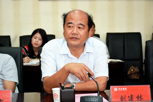 劉建林代表學(xué)校對劉建勛一行來??疾旖涣鞅硎練g迎,并向客人們介紹了我校的歷史沿革、辦學(xué)定位與辦學(xué)方向、辦學(xué)格局與學(xué)科專業(yè)、辦學(xué)特色與服務(wù)地方成就和師資隊(duì)伍建設(shè)情況。劉建林表示,我校四十年勵精圖治,升本十年風(fēng)雨兼程,近年來厚積薄發(fā),當(dāng)前,學(xué)校面臨著全面實(shí)施本科教育,構(gòu)建“穩(wěn)基提質(zhì)增速,創(chuàng)新驅(qū)動發(fā)展”新常態(tài),爭創(chuàng)一流應(yīng)用型本科院校三大任務(wù)。學(xué)校將大力實(shí)施“十大人才工程計(jì)劃”和“323211工程”,深化人事制度改革,營造“想干事、愿干事、能干事、干成事”的良好氛圍。