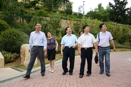 在參觀莘子苑、運(yùn)動(dòng)景觀平臺(tái)、體育場(chǎng)等處時(shí),樊代明院士對(duì)我校依山而建的山水園林校園、清新雅靜的讀書學(xué)習(xí)環(huán)境表示贊賞。
