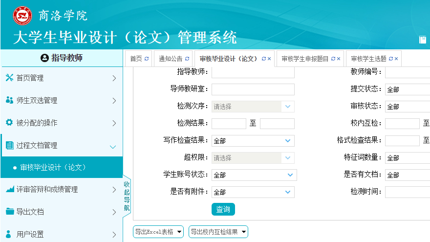 為適應疫情防控下畢業(yè)論文(設計)在線指導、管理需求,提升我校畢業(yè)論文(設計)信息化管理水平,方便畢業(yè)生線上畢業(yè)論文(設計)查重和教師在線遠程指導,我校與中國知網(wǎng)合作定制“商洛學院畢業(yè)論文(設計)管理系統(tǒng)”,充分利用線上平臺高質(zhì)量、高效率完成2020屆2974名畢業(yè)生本科畢業(yè)論文(設計)工作。