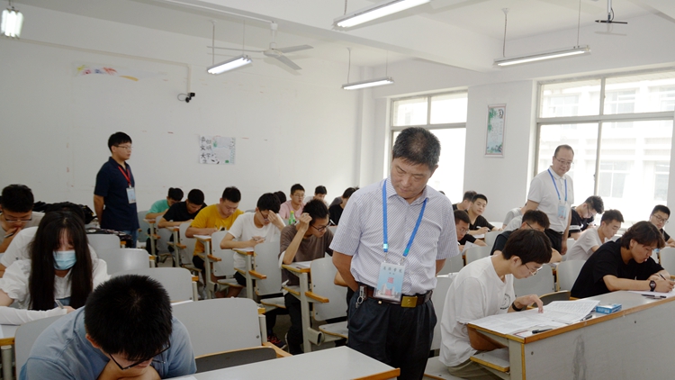 為加強(qiáng)期末考試的組織管理和考風(fēng)建設(shè),7月6日,校長(zhǎng)范新會(huì)、黨委副書記劉勇,副校長(zhǎng)劉寶盈、郭瑾在教務(wù)處相關(guān)負(fù)責(zé)人的陪同下,深入各考場(chǎng)檢查考試工作。