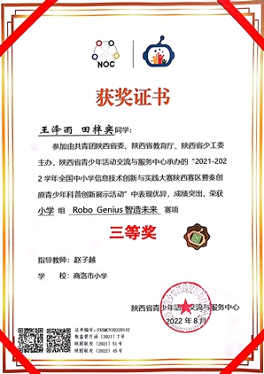 由共青團(tuán)陜西省委、陜西省教育廳、陜西省少工委主辦的2021-2022學(xué)年全國中小學(xué)信息技術(shù)創(chuàng)新與實(shí)踐(NOC)大賽陜西賽區(qū)分賽結(jié)果于近日揭曉。經(jīng)濟(jì)管理學(xué)院教師趙子越指導(dǎo)的商洛市小學(xué)團(tuán)隊(duì)獲得陜西賽區(qū)人工智能類Robo Genius智造未來賽項(xiàng)小學(xué)組省級三等獎。這是在我校公眾科學(xué)素質(zhì)與創(chuàng)新發(fā)展研究中心指導(dǎo)下,該校學(xué)生首次取得省級人工智能類賽事獎項(xiàng)。