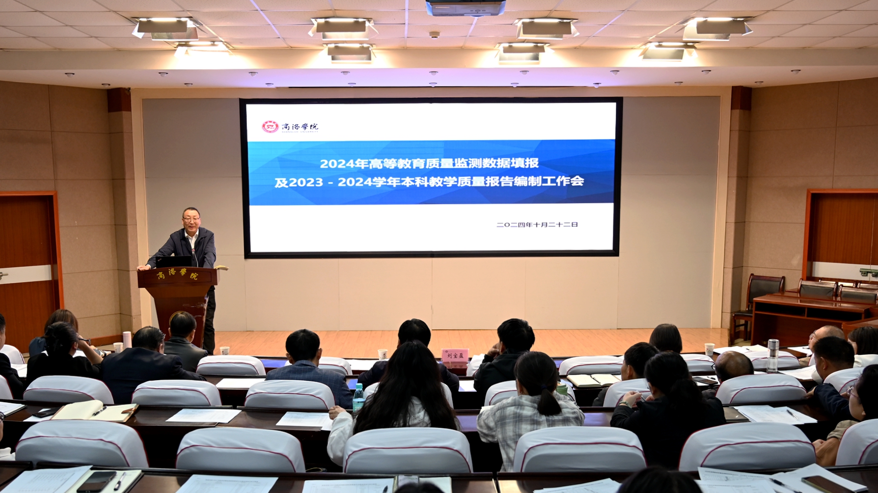為確保2024年高等教育質(zhì)量監(jiān)測(cè)國(guó)家數(shù)據(jù)平臺(tái)數(shù)據(jù)填報(bào)及2023-2024學(xué)年本科教學(xué)質(zhì)量報(bào)告編制工作高質(zhì)量完成,10月22日下午,商洛學(xué)院召開(kāi)2024年高等教育質(zhì)量監(jiān)測(cè)數(shù)據(jù)填報(bào)及2023-2024學(xué)年本科教學(xué)質(zhì)量報(bào)告編制工作會(huì)。副校長(zhǎng)劉寶盈出席會(huì)議并講話。相關(guān)職能部門負(fù)責(zé)人,二級(jí)學(xué)院(部)相關(guān)負(fù)責(zé)人及數(shù)據(jù)填報(bào)人員等70余人參加會(huì)議。會(huì)議由督導(dǎo)與評(píng)估中心主任張曉倩主持。