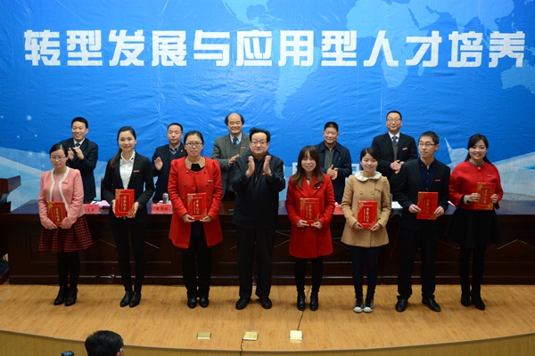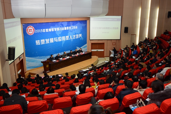 為進(jìn)一步促進(jìn)廣大教師教育教學(xué)觀念轉(zhuǎn)變,加快學(xué)校教學(xué)改革步伐,著力培養(yǎng)應(yīng)用型人才,推進(jìn)內(nèi)涵建設(shè)和轉(zhuǎn)型發(fā)展,12月20日,我校召開(kāi)了2015年教育教學(xué)研討會(huì)暨教學(xué)工作會(huì)。大會(huì)以“轉(zhuǎn)型發(fā)展與應(yīng)用型人才培養(yǎng)”為主題。金陵科技學(xué)院黨委書(shū)記、博士生導(dǎo)師陳小虎教授應(yīng)邀作了專(zhuān)題報(bào)告。校黨委書(shū)記、校長(zhǎng)劉建林在大會(huì)上講話,黨委副書(shū)記、副校長(zhǎng)范新會(huì)作教學(xué)工作報(bào)告。紀(jì)委書(shū)記王思懷、副校長(zhǎng)魏書(shū)堂、黨委副書(shū)記彭虎軍、副校長(zhǎng)劉寶盈出席大會(huì)。大會(huì)還對(duì)2015年度教學(xué)工作先進(jìn)集體和個(gè)人進(jìn)行了表彰。相關(guān)職能部門(mén)負(fù)責(zé)人、優(yōu)秀教學(xué)論文作者代表在大會(huì)上作了交流。范新會(huì)和彭虎軍分別主持大會(huì)議程。
