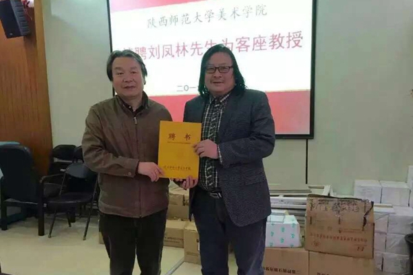 3月4日,陜西師范大學(xué)美術(shù)學(xué)院舉辦客座教授聘任儀式,聘請陜西省美術(shù)家協(xié)會理事、陜西書畫院副院長、商洛市美術(shù)家協(xié)會主席、我校藝術(shù)學(xué)院院長劉鳳林為客座教授。陜西師范大學(xué)美術(shù)學(xué)院院長馮民生為劉鳳林頒發(fā)了聘書。