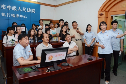 活動期間,校領(lǐng)導(dǎo)劉建林、范新會及師生依次參觀了商洛中院的審判法庭、科技法庭、黨建活動室、審判質(zhì)效管理辦公室和執(zhí)行指揮中心以及法官們工作生活場地,感受人民法院的神圣,感知審判執(zhí)行全過程,零距離了解人民法官。