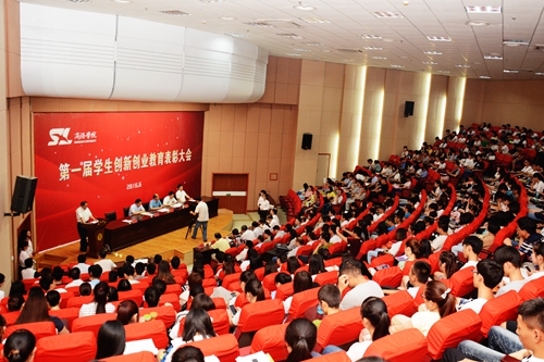劉建林代表學(xué)校黨政對受到表彰的優(yōu)勝標(biāo)兵、先進個人、優(yōu)勝團隊表示熱烈祝賀,對一年來努力拼搏的學(xué)生、辛苦付出的教師表示誠摯的敬意。劉建林指出,創(chuàng)新創(chuàng)業(yè)教育是加快學(xué)校轉(zhuǎn)型發(fā)展、發(fā)揮辦學(xué)優(yōu)勢、培養(yǎng)應(yīng)用型人才的必然要求,為加快構(gòu)建“穩(wěn)基、提質(zhì)、增速,創(chuàng)新驅(qū)動發(fā)展”新常態(tài),學(xué)校將2016年確定為“創(chuàng)新年”,成立了學(xué)生創(chuàng)新創(chuàng)業(yè)教育工作領(lǐng)導(dǎo)小組,出臺了《商洛學(xué)院學(xué)生創(chuàng)新創(chuàng)業(yè)教育實施方案》《商洛學(xué)院學(xué)生創(chuàng)新創(chuàng)業(yè)教育實施細(xì)則》,在廣大師生的努力下,我校的創(chuàng)新創(chuàng)業(yè)教育工作開展卓有成效、成績斐然。