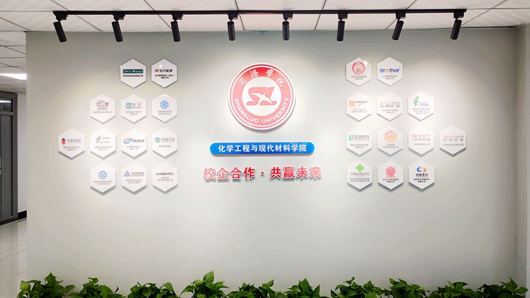 為更好打造校企合作品牌,化材學(xué)院在丹江校區(qū)教學(xué)樓設(shè)置了校企合作單位展示墻。簽約儀式期間,參會企業(yè)和化材學(xué)院1100余名師生通過“云揭幕”的形式,共同見證商洛學(xué)院化學(xué)工程與現(xiàn)代材料學(xué)院共建企業(yè)銘牌揭牌儀式。