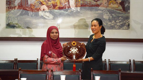 經(jīng)濟管理學院副院長周小婷向Hazlina老師贈送了以商洛核桃為材質的工藝品——“吉慶有余”中國結,祝愿兩校之間的合作百尺竿頭,更進一步,祝愿兩校師生之間的友誼地久天長。