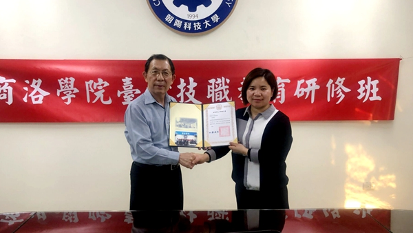 研修結(jié)束后,朝陽科技大學(xué)為參訪團(tuán)學(xué)員頒發(fā)了結(jié)業(yè)證書。
