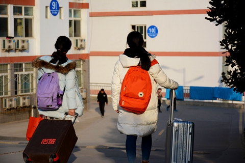 同學(xué)們提著行李,回到了心愛的校園,開始新學(xué)期的生活。