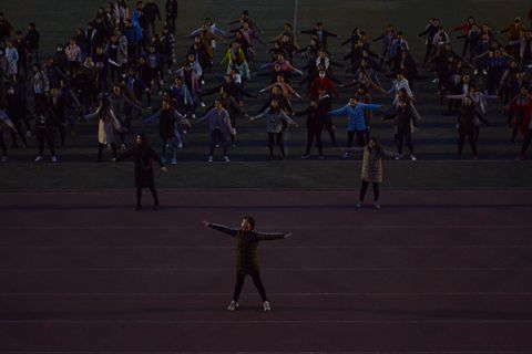 天還沒亮,體育場上已經(jīng)熱鬧起來,晨跑和廣播體操驅(qū)走了寒氣,讓大家精神煥發(fā)。